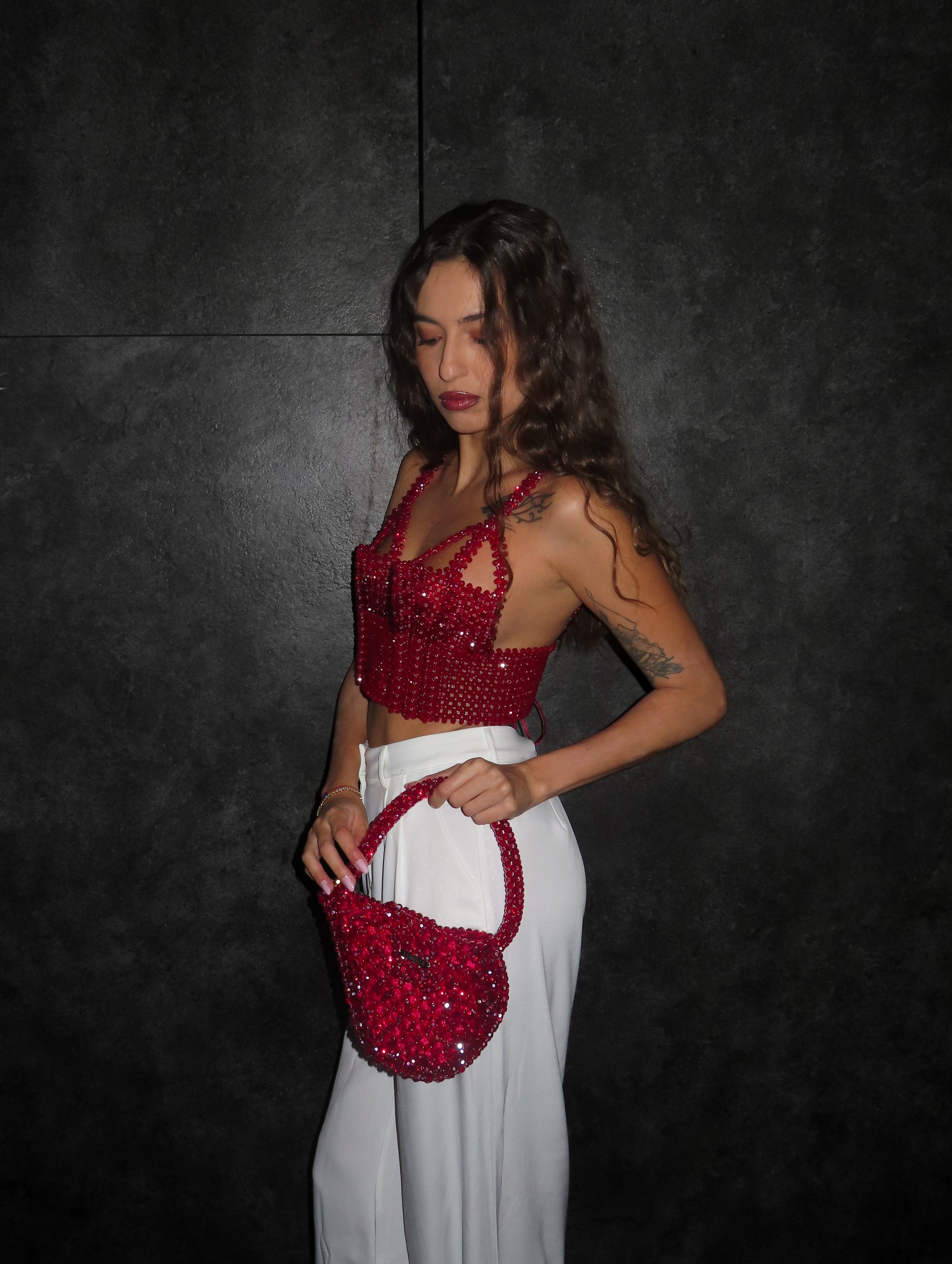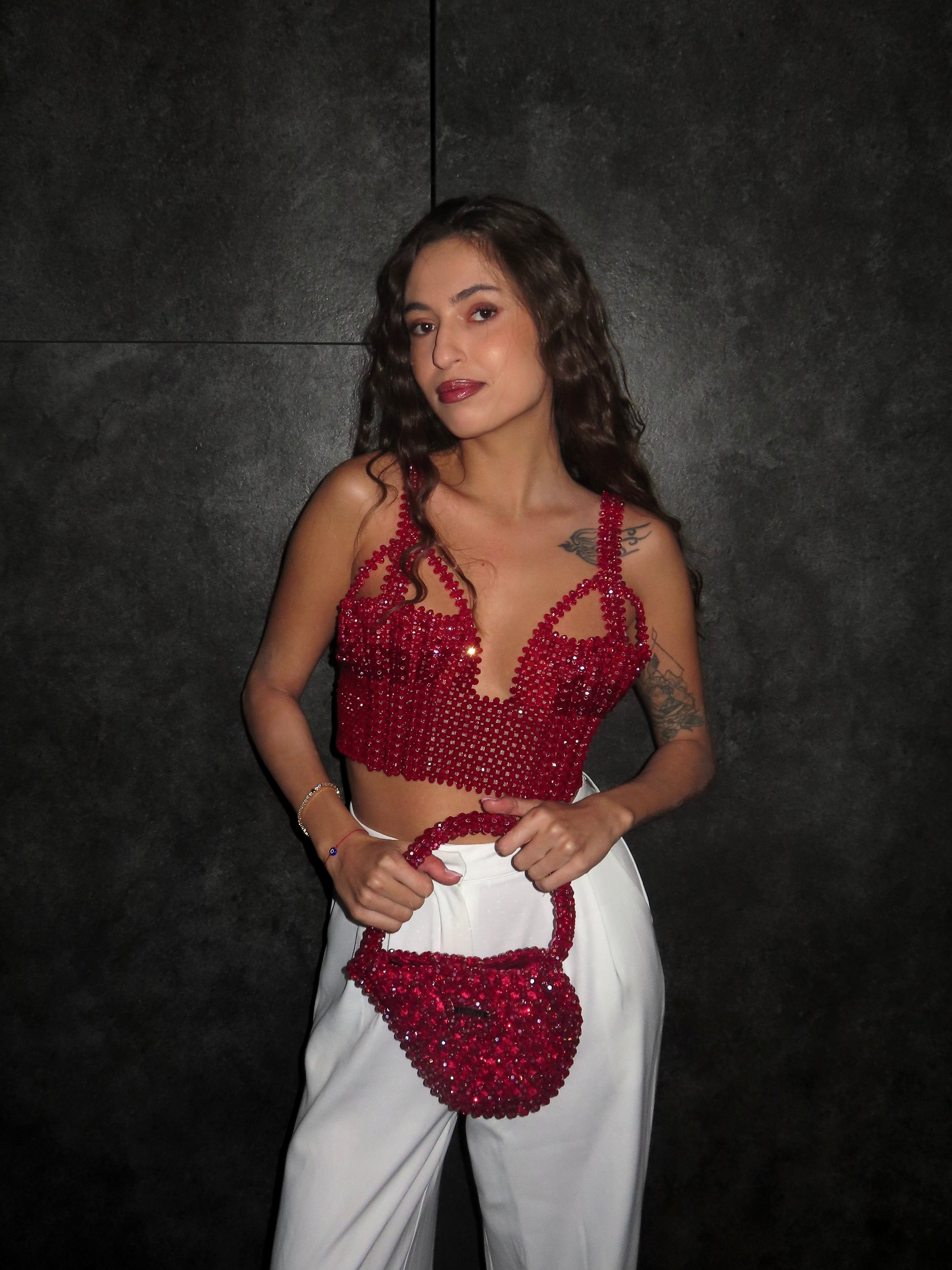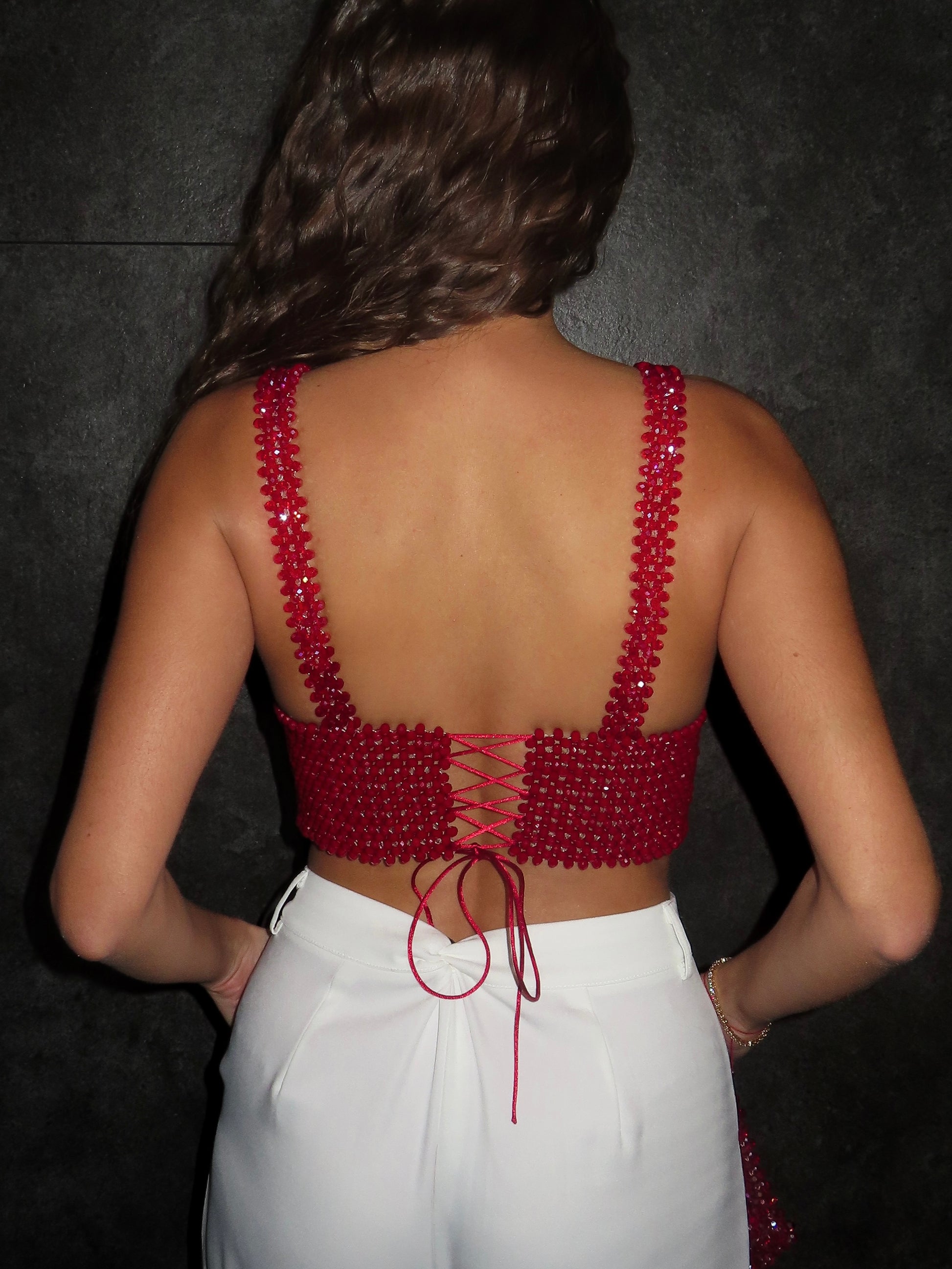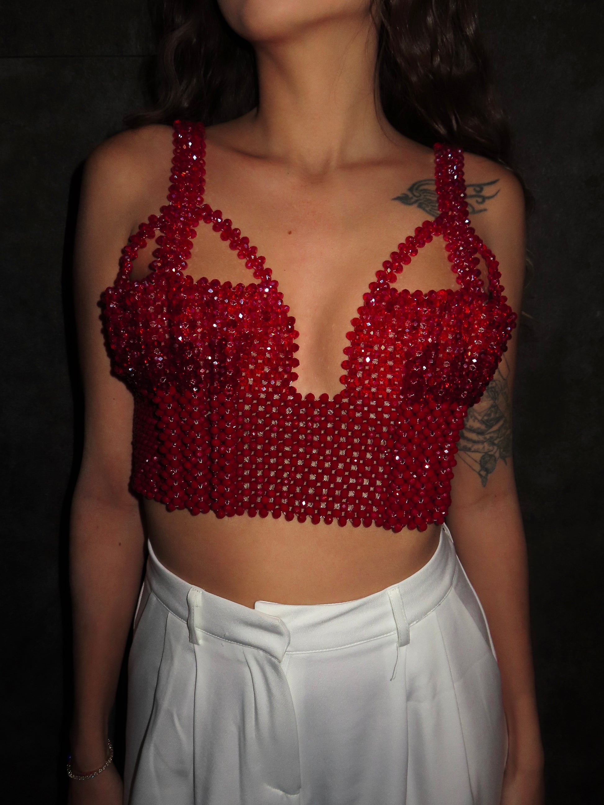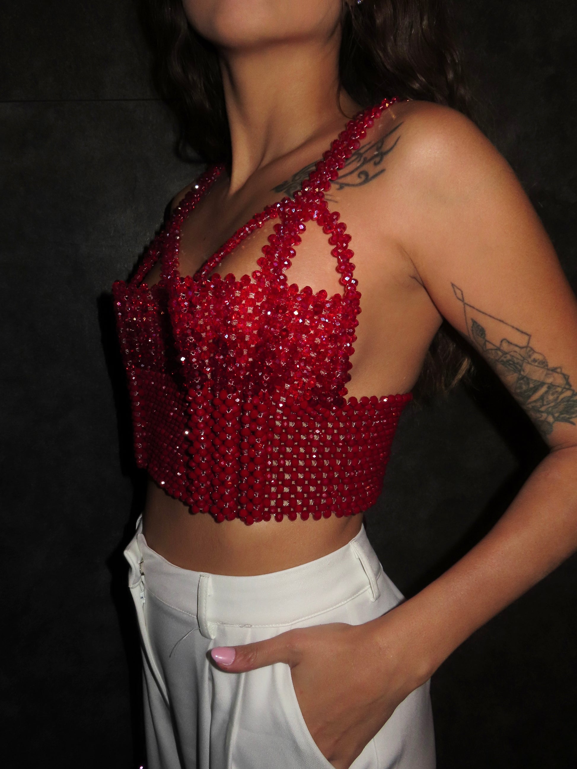 Introducing the AMORE Crystal Top by Lorélle – a handcrafted masterpiece adorned with shimmering crystal beads, epitomizing luxurious elegance. The Crystal Top is a testament to exquisite craftsmanship, designed to captivate and enchant with its dazzling allure. Elevate your style with the AMORE Crystal Top, where timeless beauty meets modern sophistication.