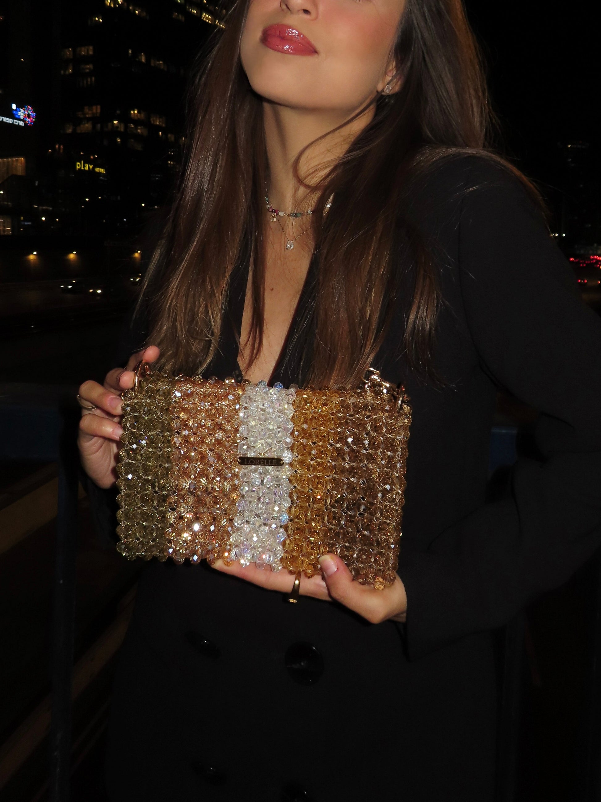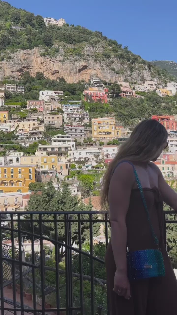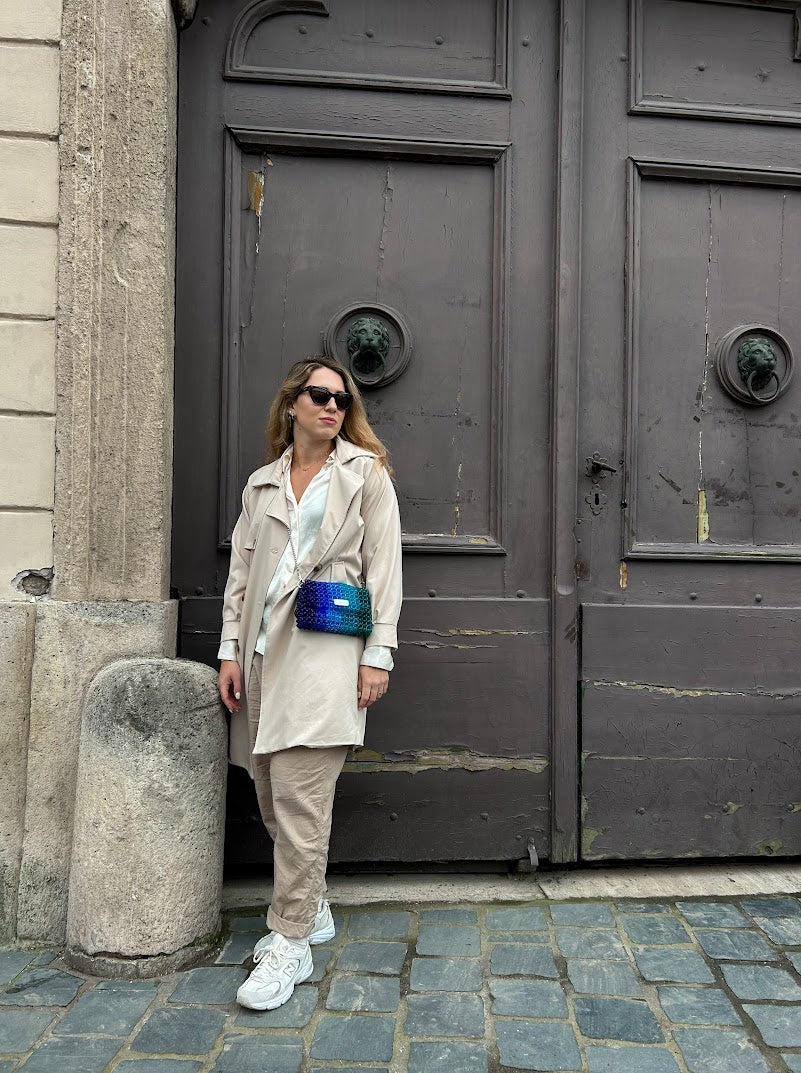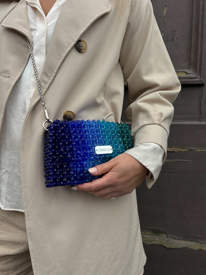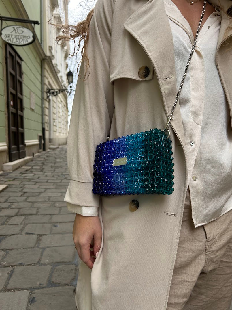 Introducing the Cassiopeia Crystal Bag by Lorélle – a celestial marvel of handcrafted luxury. Adorned with a breath-taking gradient of blue and green crystal beads, this exquisite piece captures the enchanting beauty of the night sky. Elevate your style with the Cassiopeia Crystal Bag, where cosmic elegance meets masterful artistry.