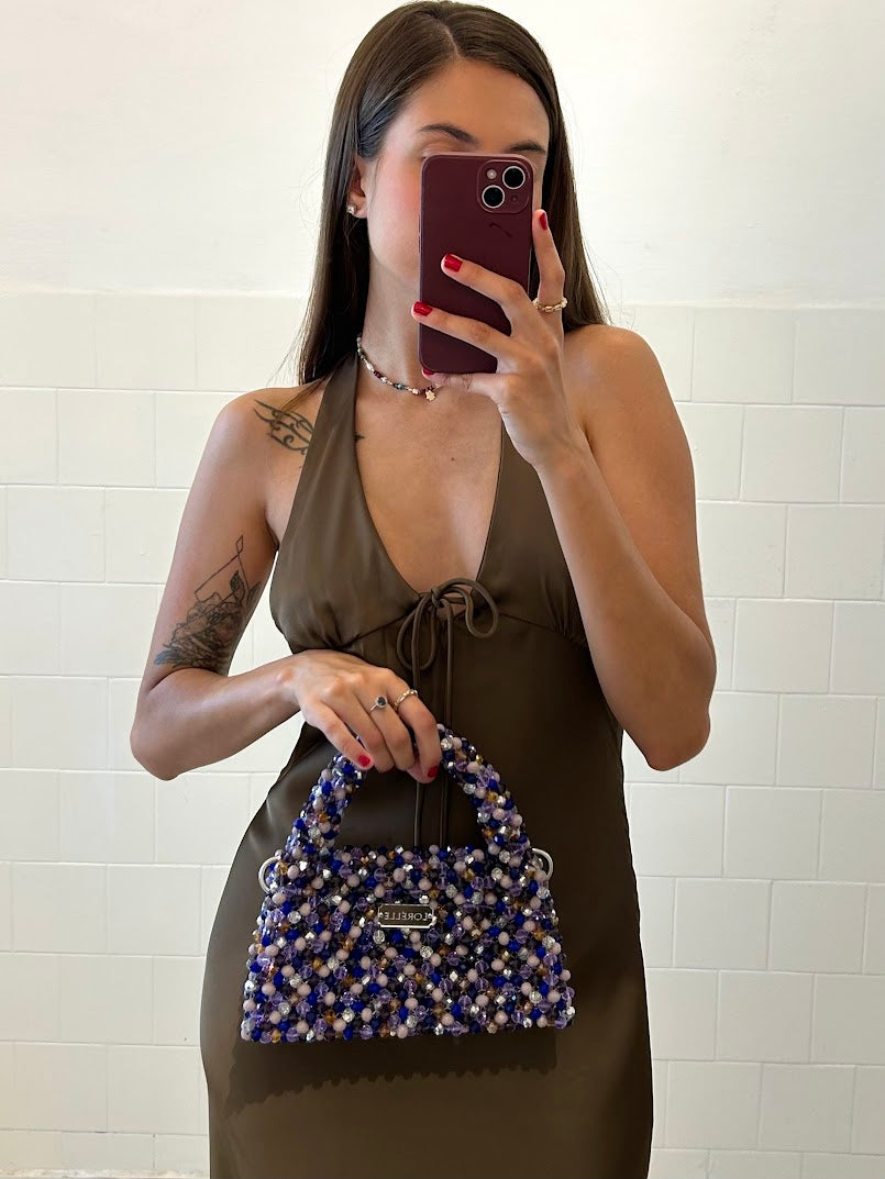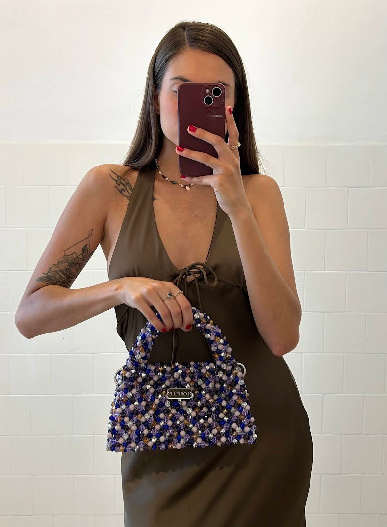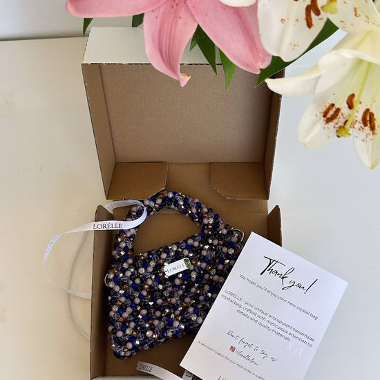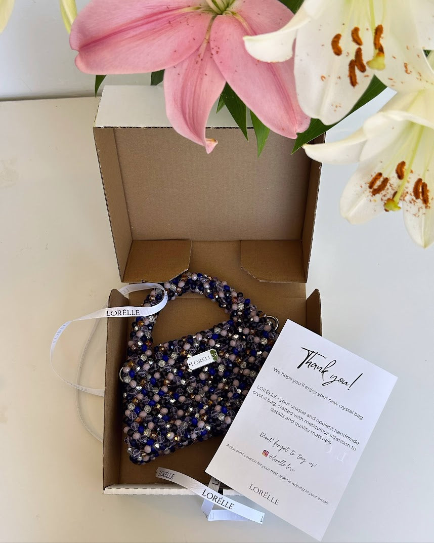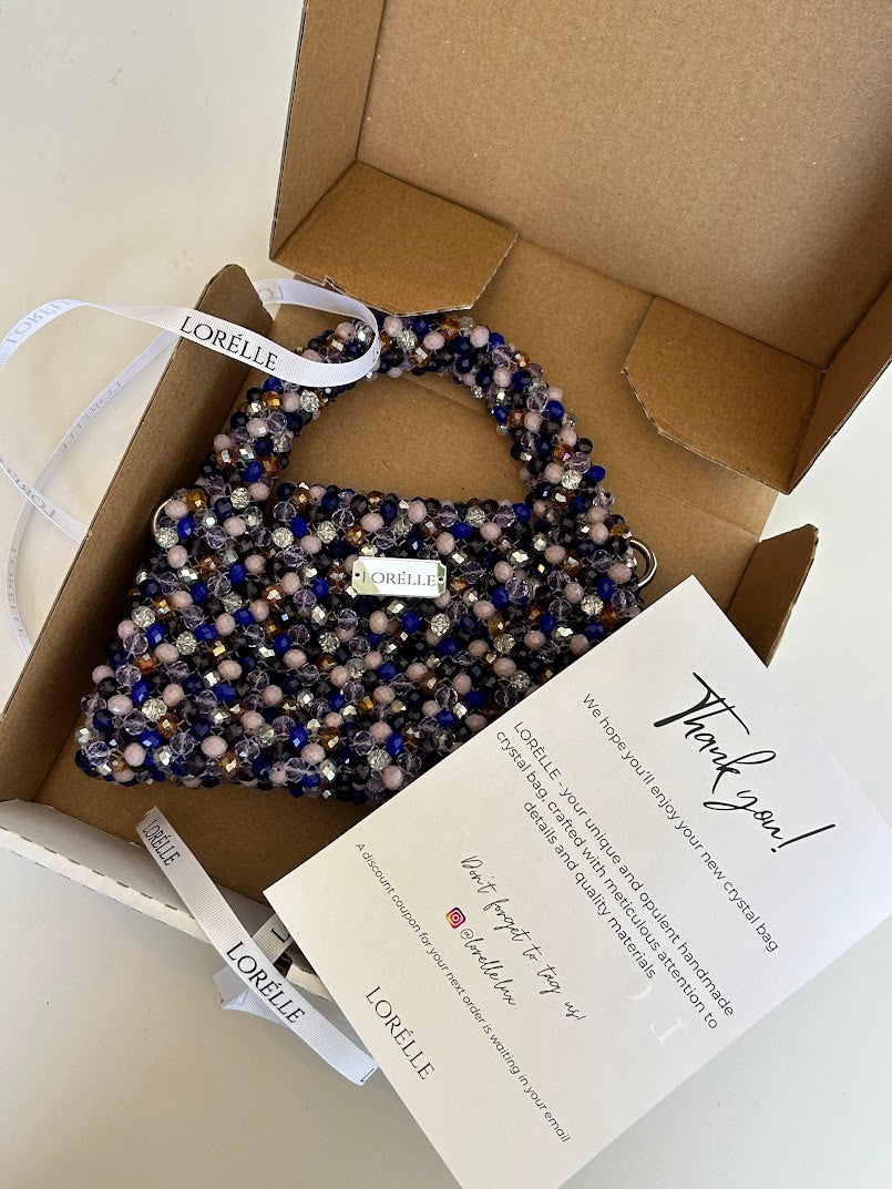 Introducing the Charm Bag by Lorélle – a luxurious handcrafted accessory that epitomizes elegance. Adorned with dazzling crystal beads, this exquisite piece is designed to captivate and enchant. Elevate your ensemble with the Charm Bag, where impeccable craftsmanship meets timeless sophistication.