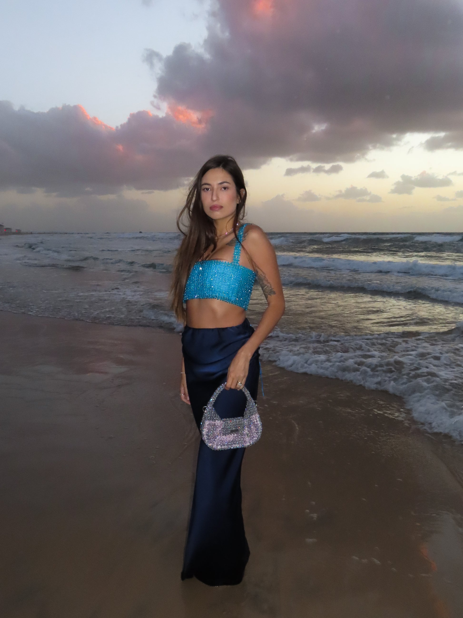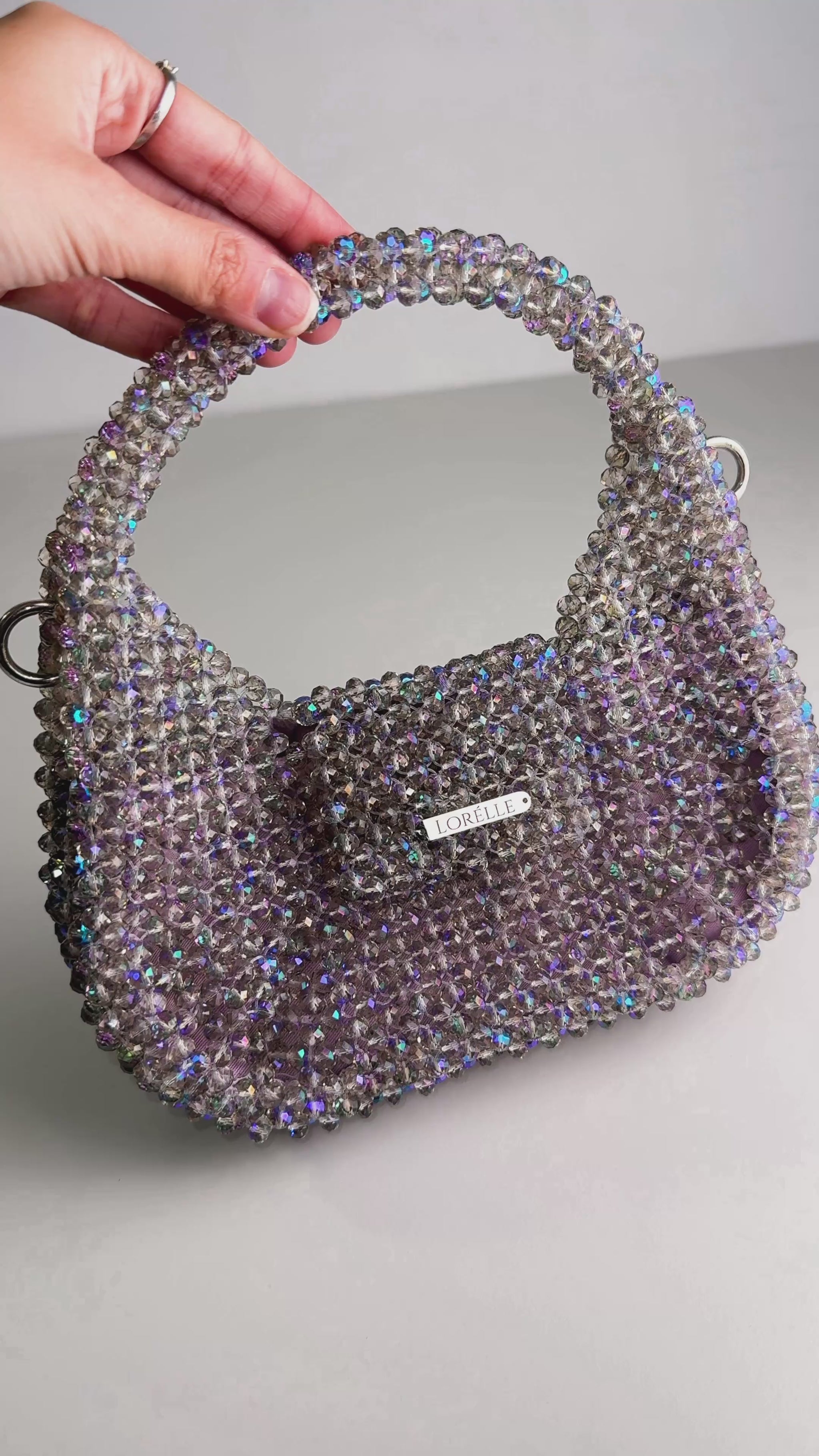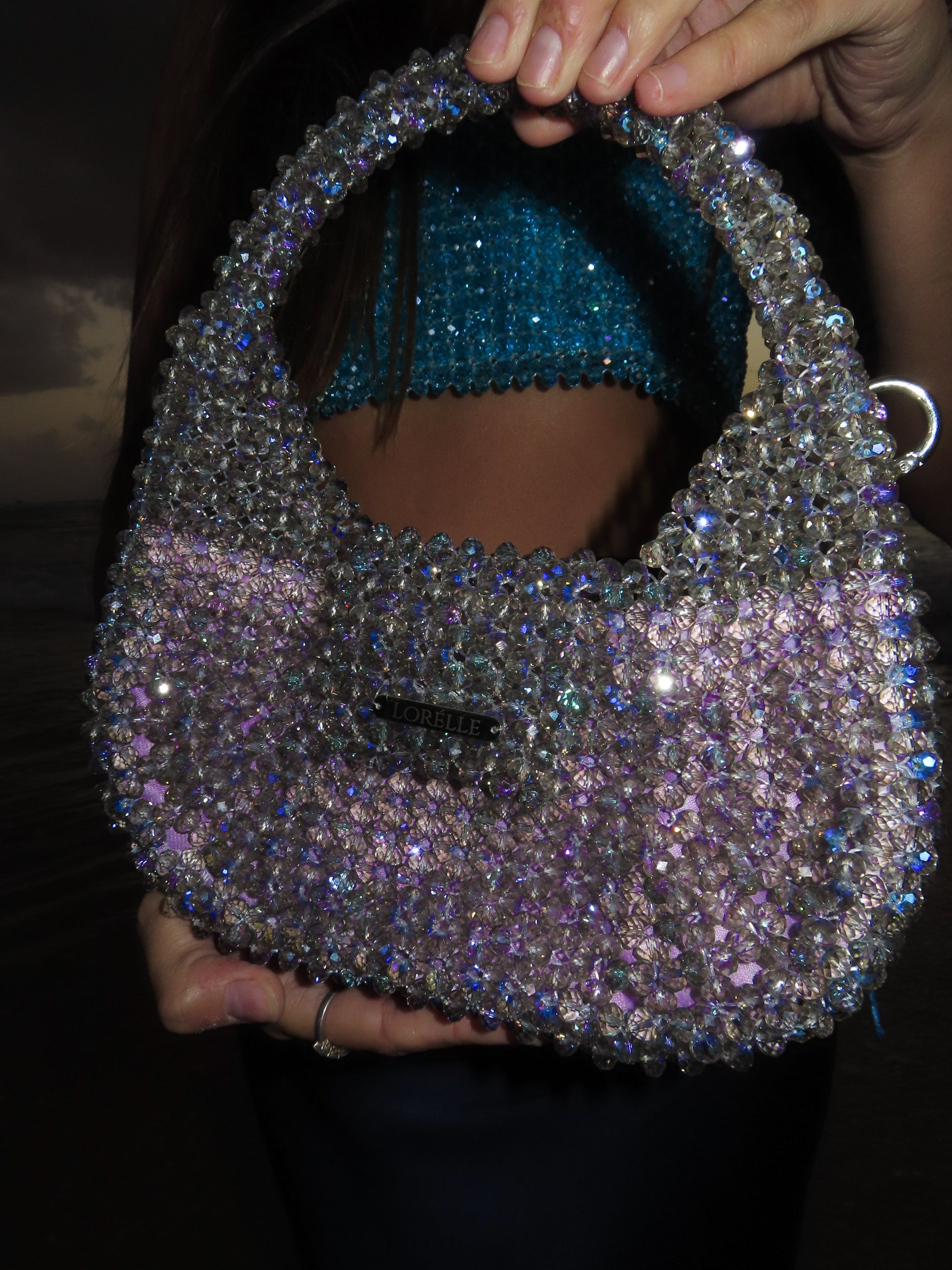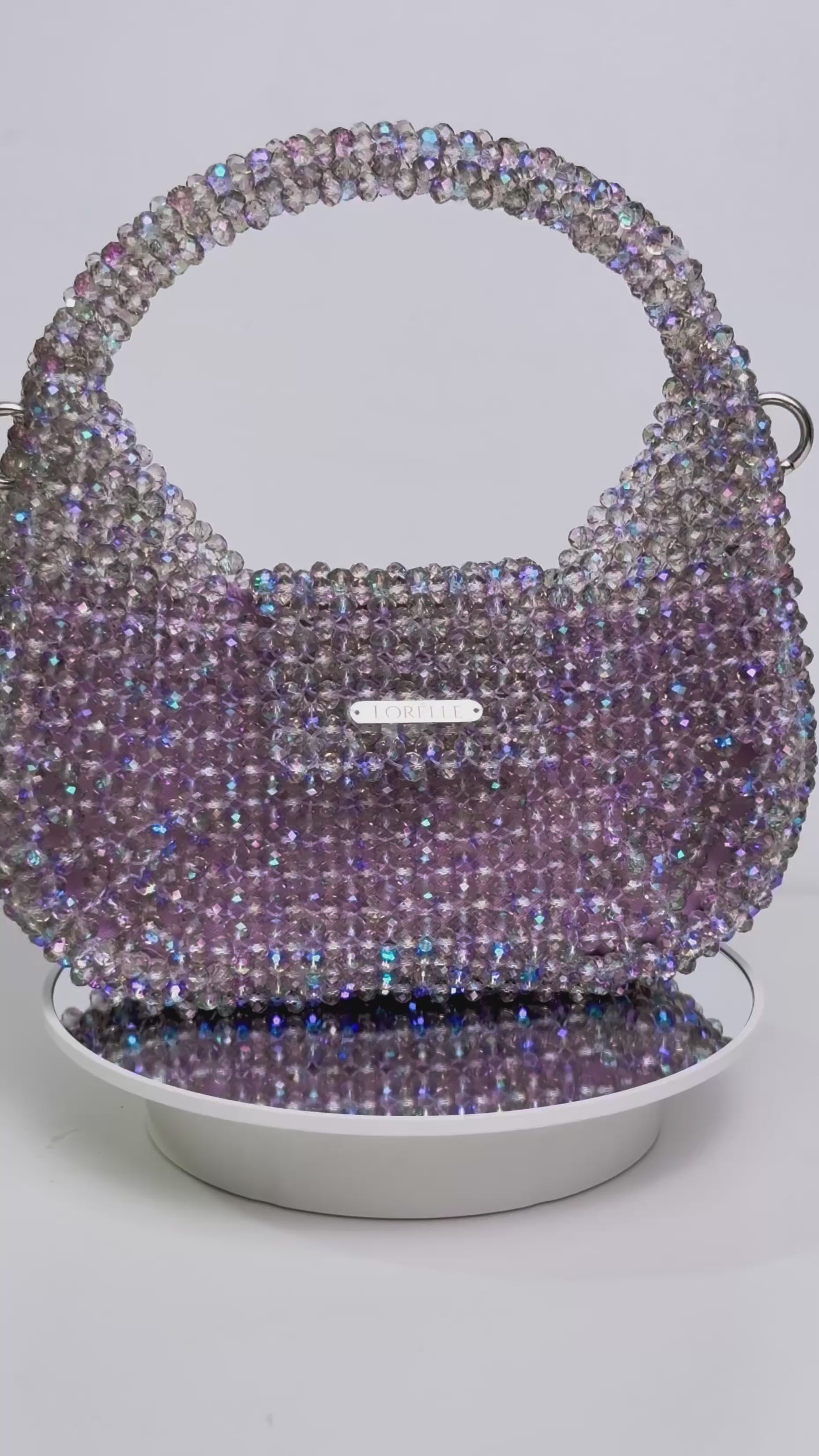 Introducing MELODY – the crown jewel of the Mermaid Collection. Shaped like an ethereal sea-born lyre harp, this sculptural masterpiece is inspired by the mystical rhythm of the ocean. Handwoven with Preciosa premium crystal beads in a shimmering purple hue kissed by ocean tones, MELODY captures the enchantment of deep-sea treasures. Each bead reflects light like sunlight dancing on waves, evoking the feeling of holding a sacred artifact from Atlantis itself. More than a handbag – MELODY is a lyrical expression of elegance, rarity, and underwater fantasy. A true statement of refinement, rarity, and rhythm – this is the premium icon of the collection.