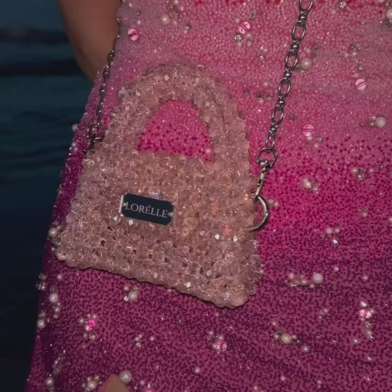 Elevate your elegance with the Mini Charm Crystal Bag by Lorélle, a dazzling creation hand-embellished with radiant crystal beads. This petite yet opulent accessory exudes luxury, making it the perfect statement piece for any ensemble. Revel in the unparalleled craftsmanship and timeless beauty of the Mini Charm Crystal Bag.