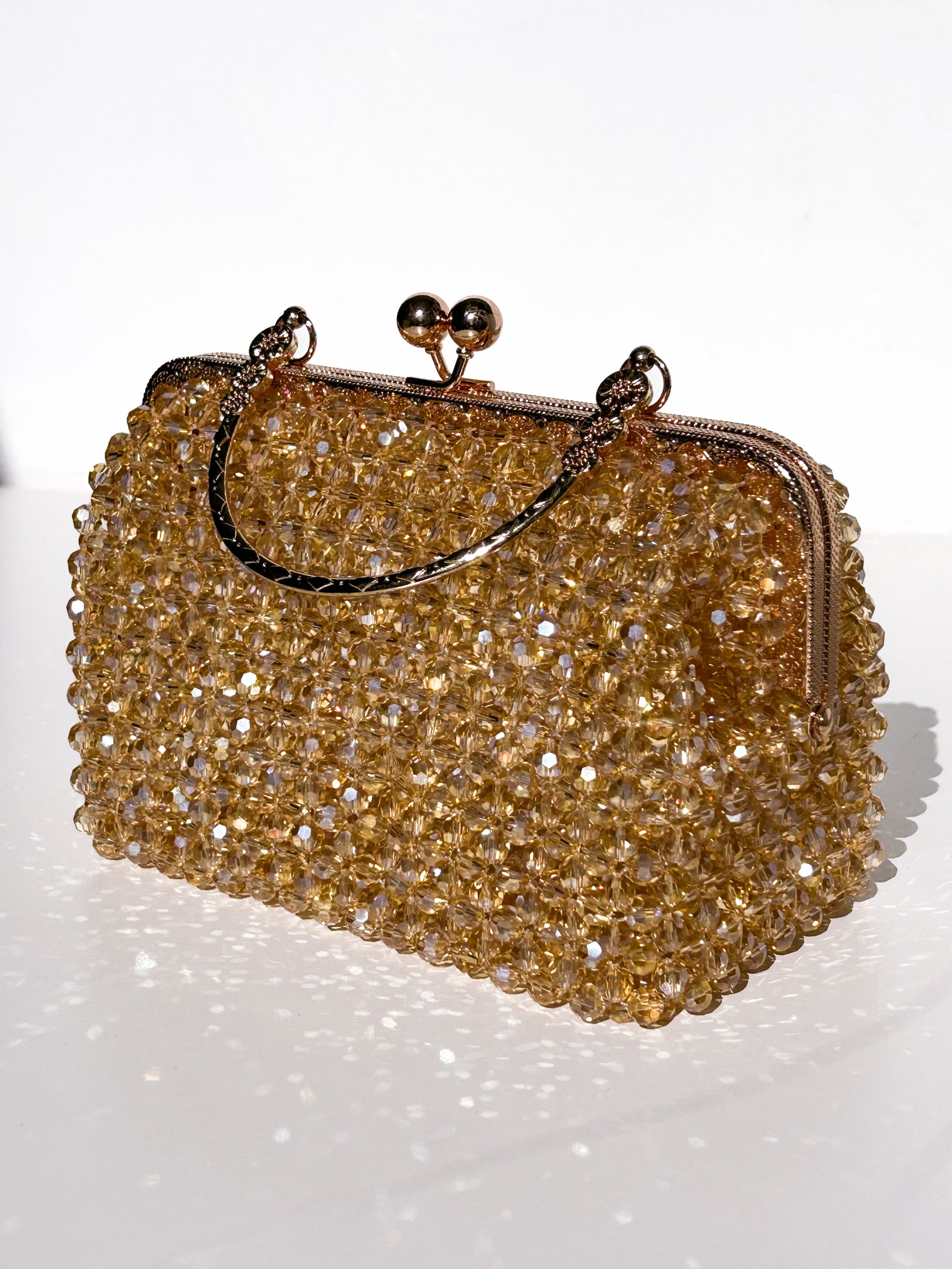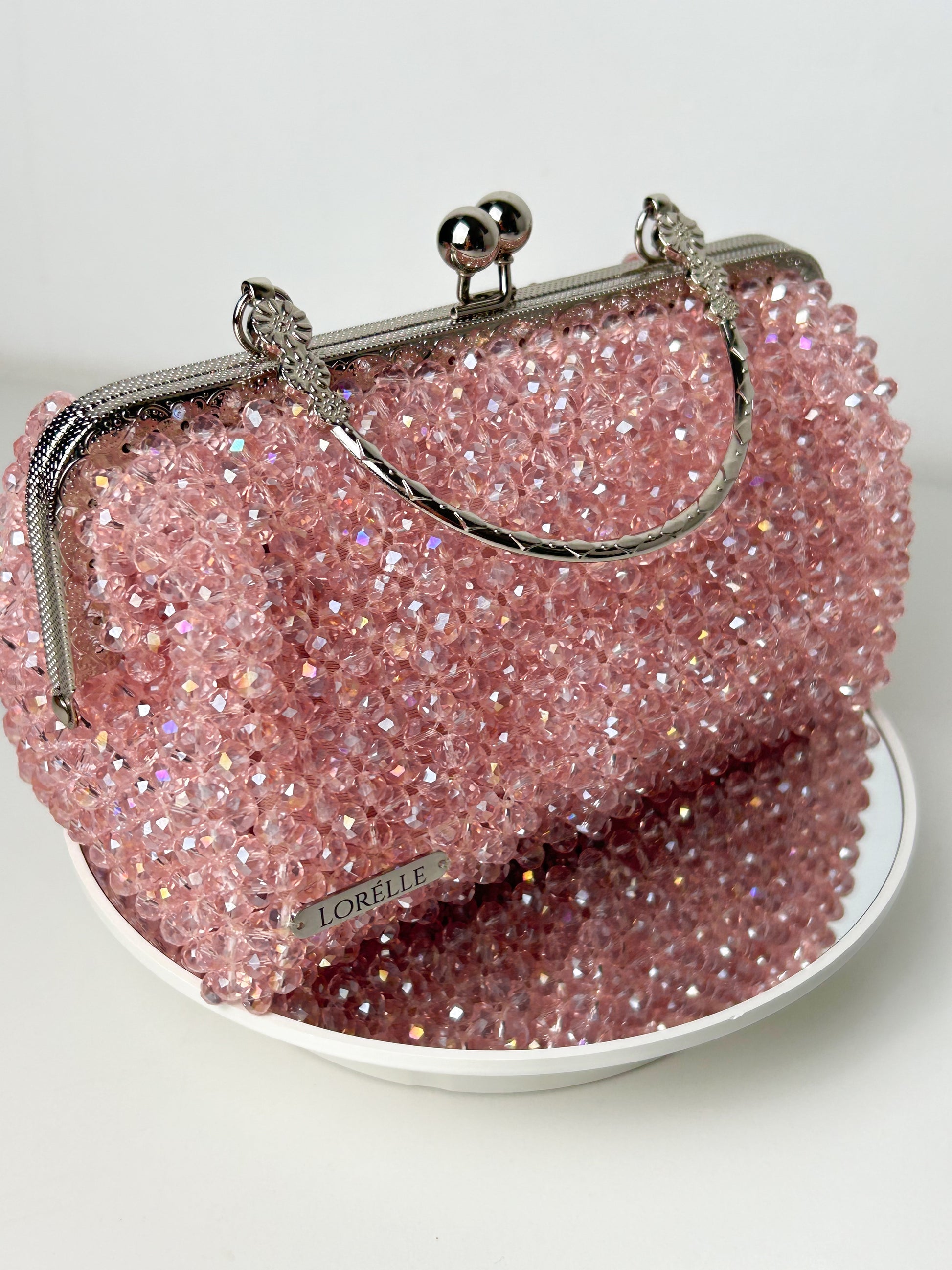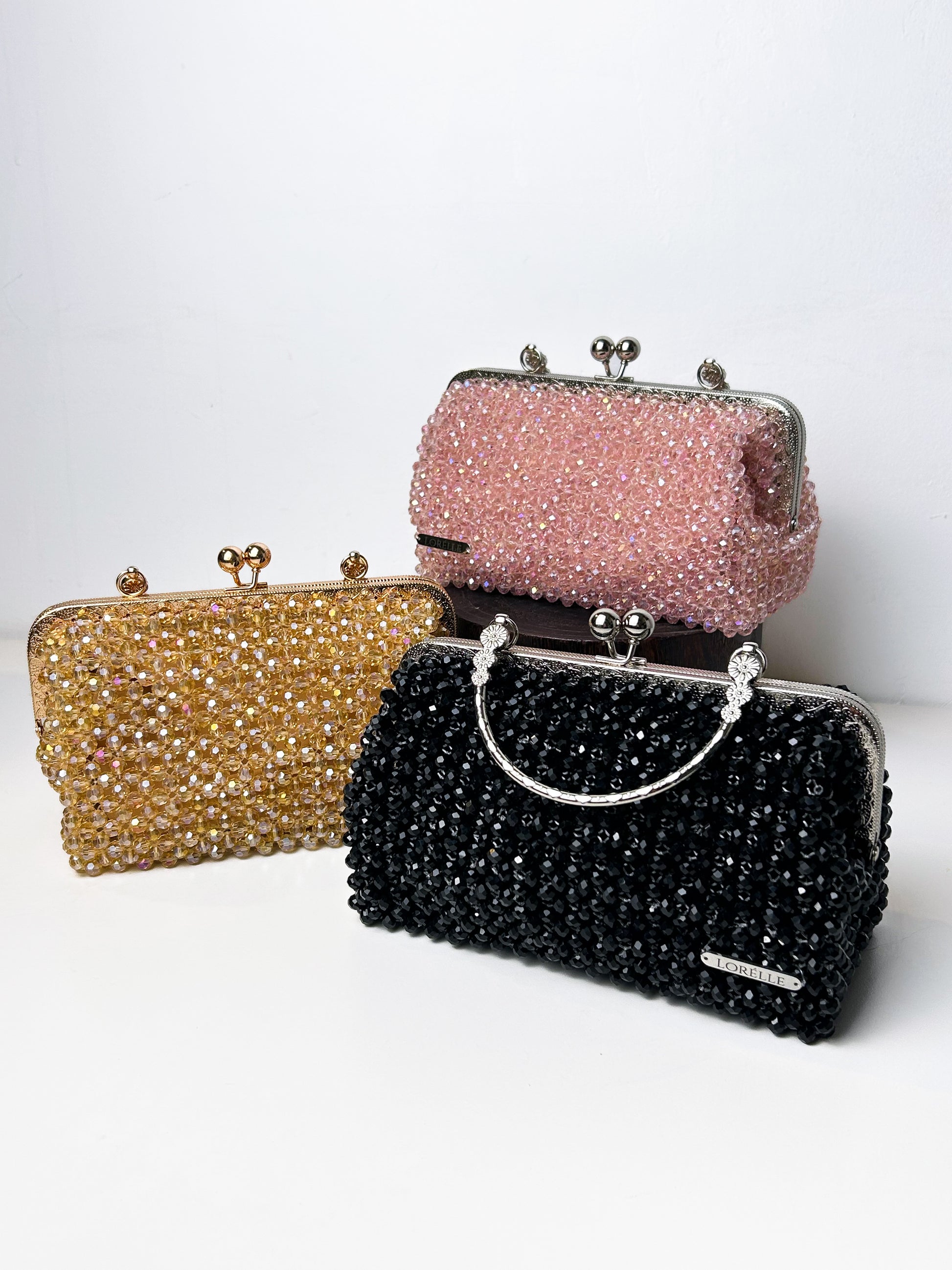 Introducing the Sofié Clutch Crystal Bag by Lorélle – a luxurious, handcrafted marvel with a distinctive design. Adorned with shimmering crystal beads, this exquisite piece features a unique structure enhanced by a stainless steel clutch frame and handle, adding a touch of opulence. Elevate your accessory collection with the Sofié Clutch Crystal Bag, where timeless craftsmanship meets refined elegance